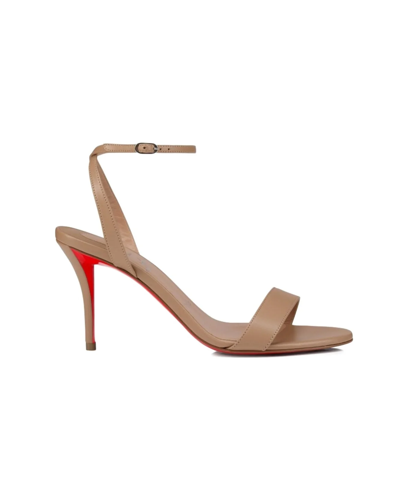 light brown leather upper single front strap stiletto heel buckle fastening red lacquered sole Composition: Lambskin, 100% Made in: Italy Color: Powder Size and fit: - HEEL: 10.0 Centimetres - Model number: 3250170N295