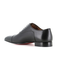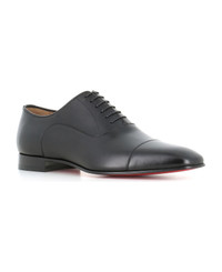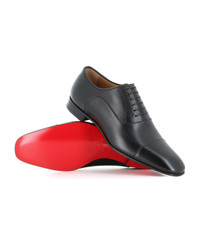 Black patent calfskin Man's by Christian Louboutin, featuring a tapered shape, a closed lacing and a grosgrain finish. Thin leather sole. Lined interior. Heel: 2 cm Composition: Leather Made in: Italy Color: Black Size and fit: - Fits true to size. Model number: GREGGOFLAT