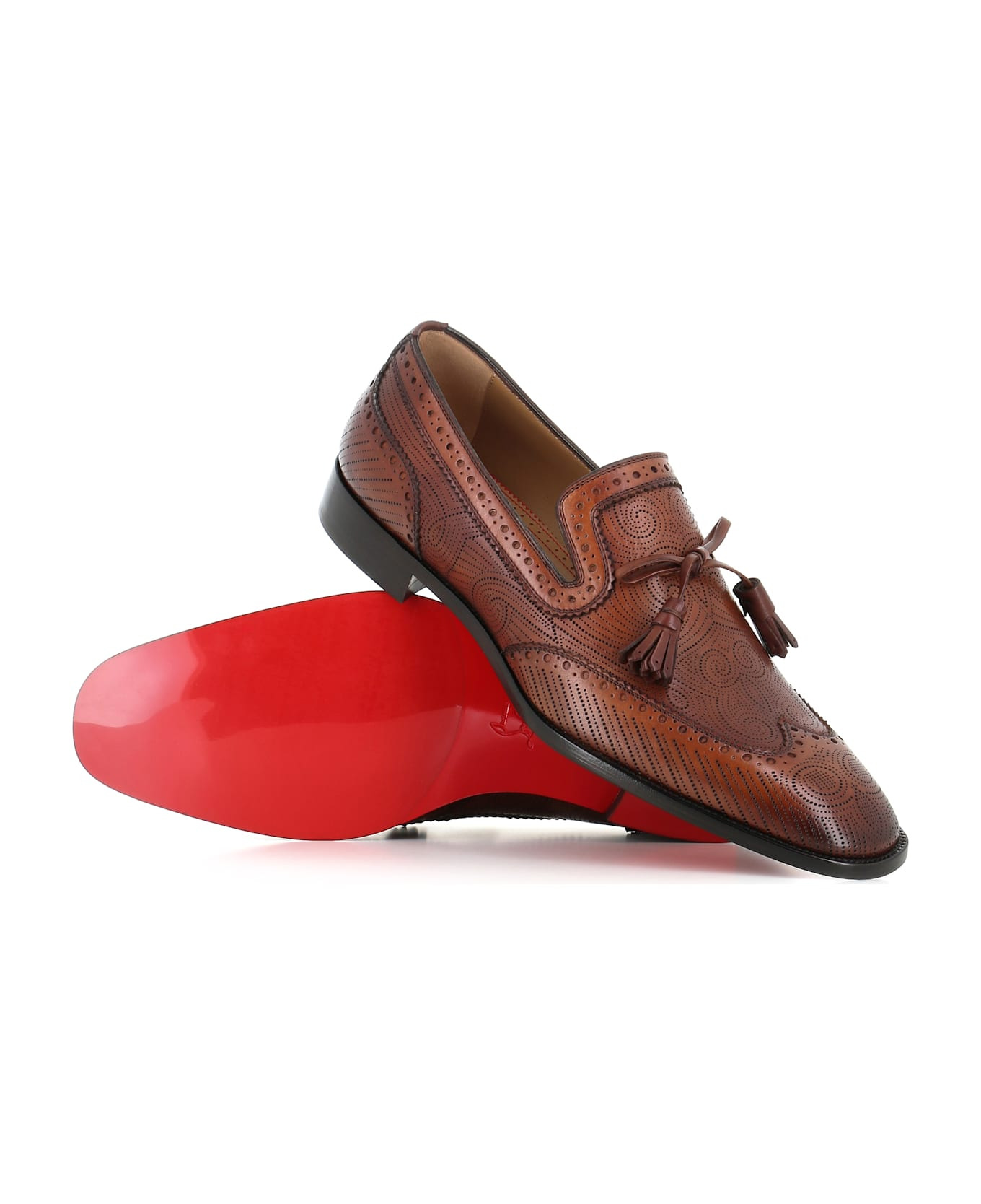 Tan calf leather men's slipper by Christian Louboutin, featuring by an almond toe and dovetail stitching. Leather sole with half rubber on tone. Lined interior. Heel: 2 cm Composition: Leather Made in: Italy Color: Leather Size and fit: - Fits true to size. Model number: GRAVEMOC