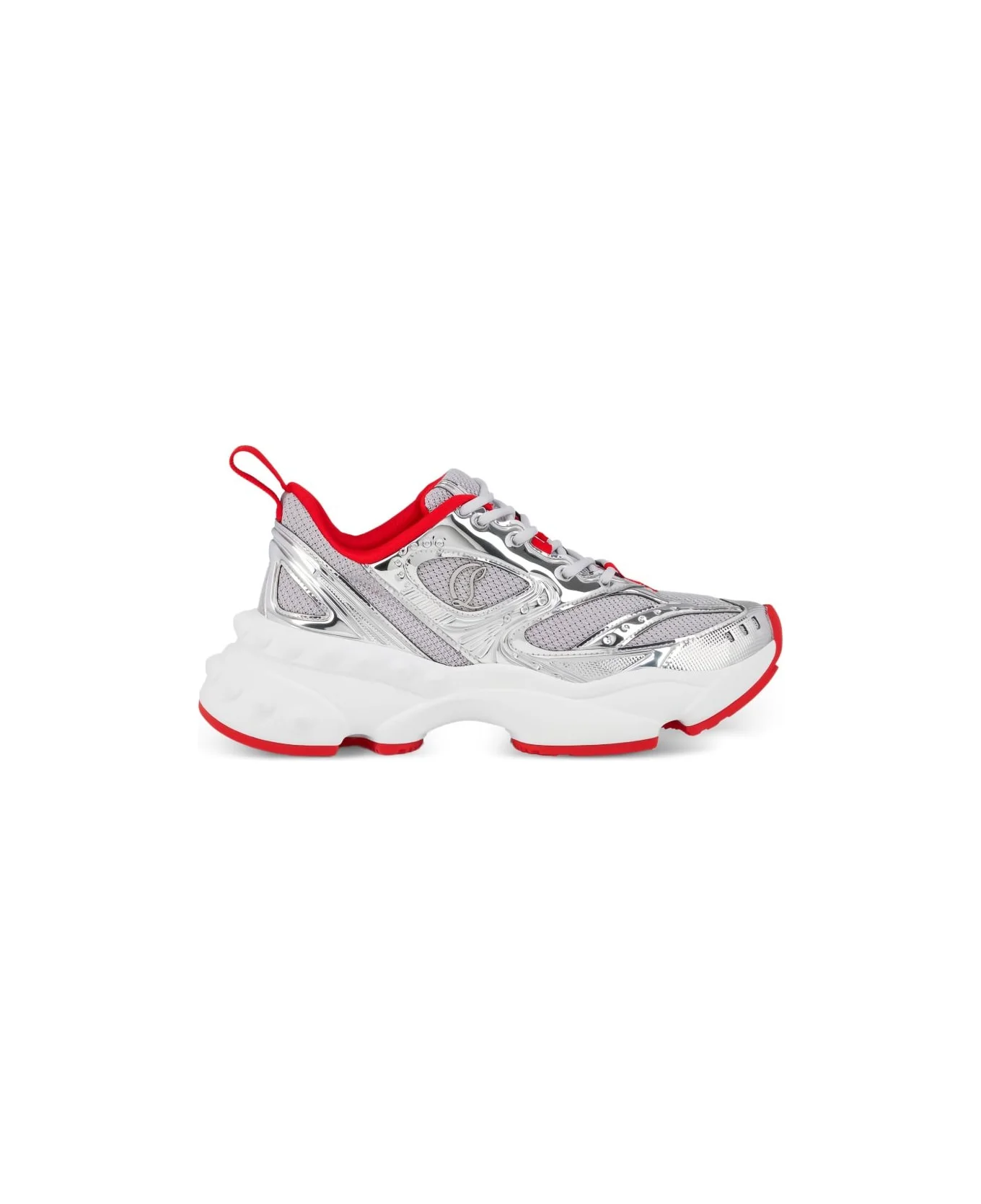 silver-tone panelled design pull-tab at rear lace-up fastening platform sole red sole Composition: Sole: Rubber, 100% , Outer: Mesh, 100% , Calf Leather, 100% Made in: Portugal Color: Silver Model number: 1260214SV20