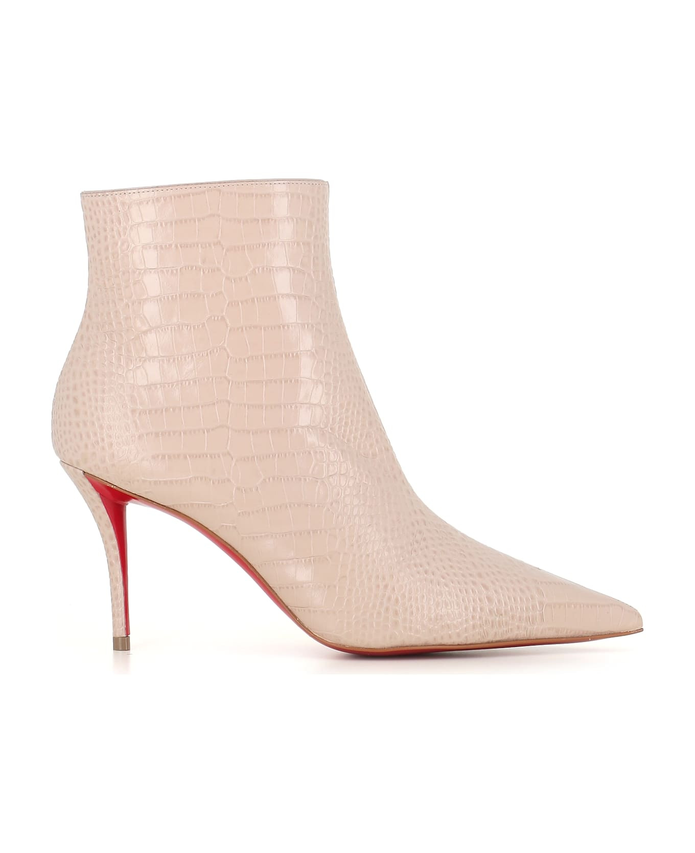 Ivory women's semi-shine reptile effect leather ankle boot by Christian Louboutin, featuring by a pointed toe and a side rear fastening. Leather sole with rubber. Lined interior. Heel: 8 cm Composition: Leather Made in: Italy Color: Pearl Size and fit: - Fits true to size. Model number: MISSZ