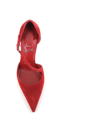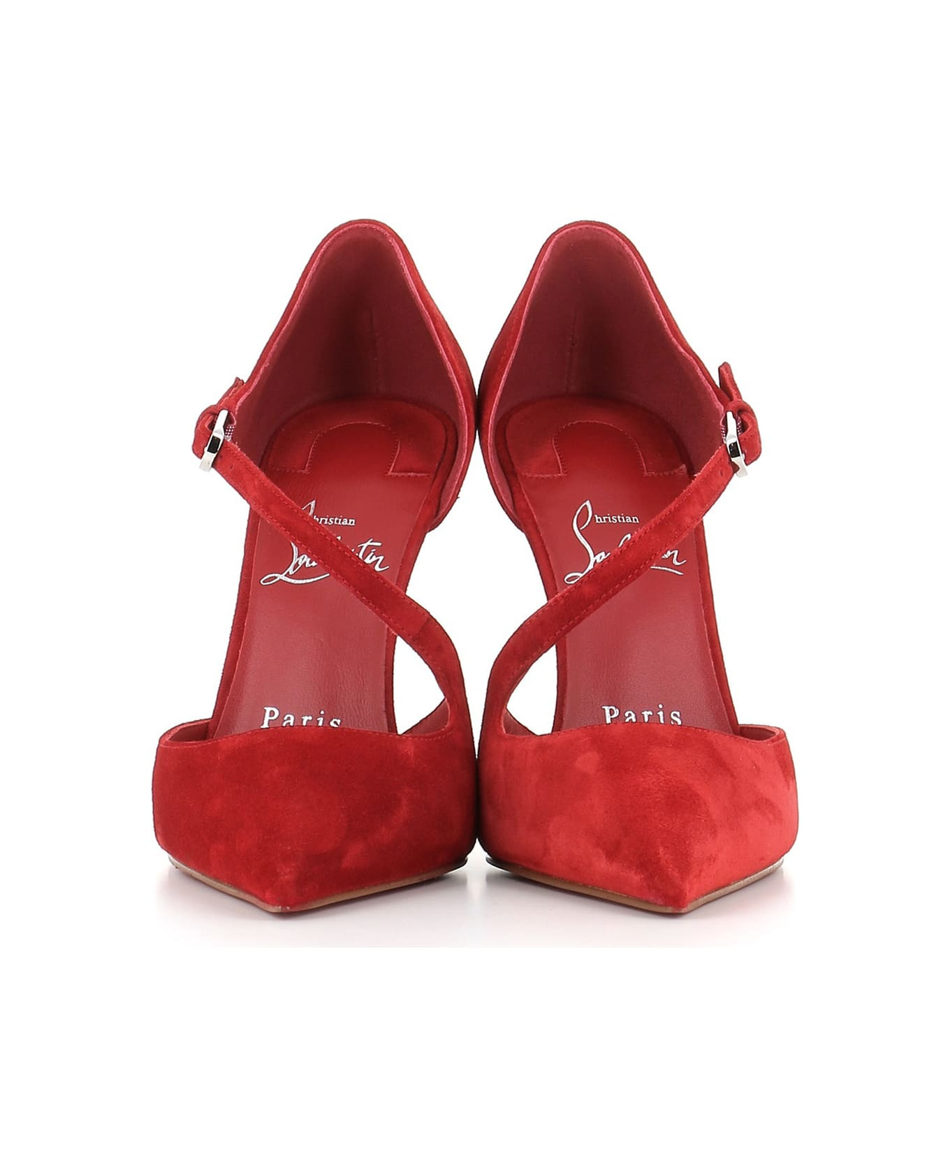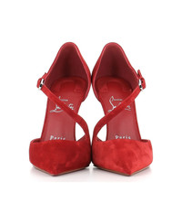 Suede Red women's decollete by Christian Louboutin, featuring by a asymmetric strap with side closure. Leather sole with rubber. Lined interior. Heel: 10 cm Composition: Suede Made in: Italy Color: Red Size and fit: - Fits true to size. Model number: MISSZIGGYTA
