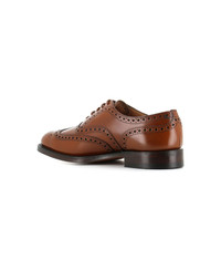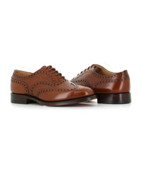Sandalwood brushed leather Oxford Shoes from Church's, featuring with almond toe, lace-up front and decorative perforations. Lined interior. Leather sole. Heel: 3 cm Composition: Leather Made in: United Kingdom Color: Cognac Size and fit: - Fits true to size. Model number: BURWOODEEB002