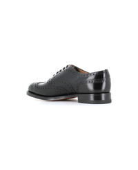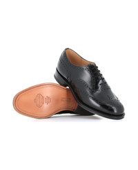 Black leather Oxford Shoes from Church's, featuring with almond toe, lace-up front and decorative perforations. Lined interior. Leather sole. Heel: 3 cm Composition: Leather Made in: United Kingdom Color: Black Size and fit: - Fits true to size. Model number: BURWOODEEB002FG000009XV