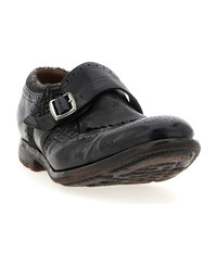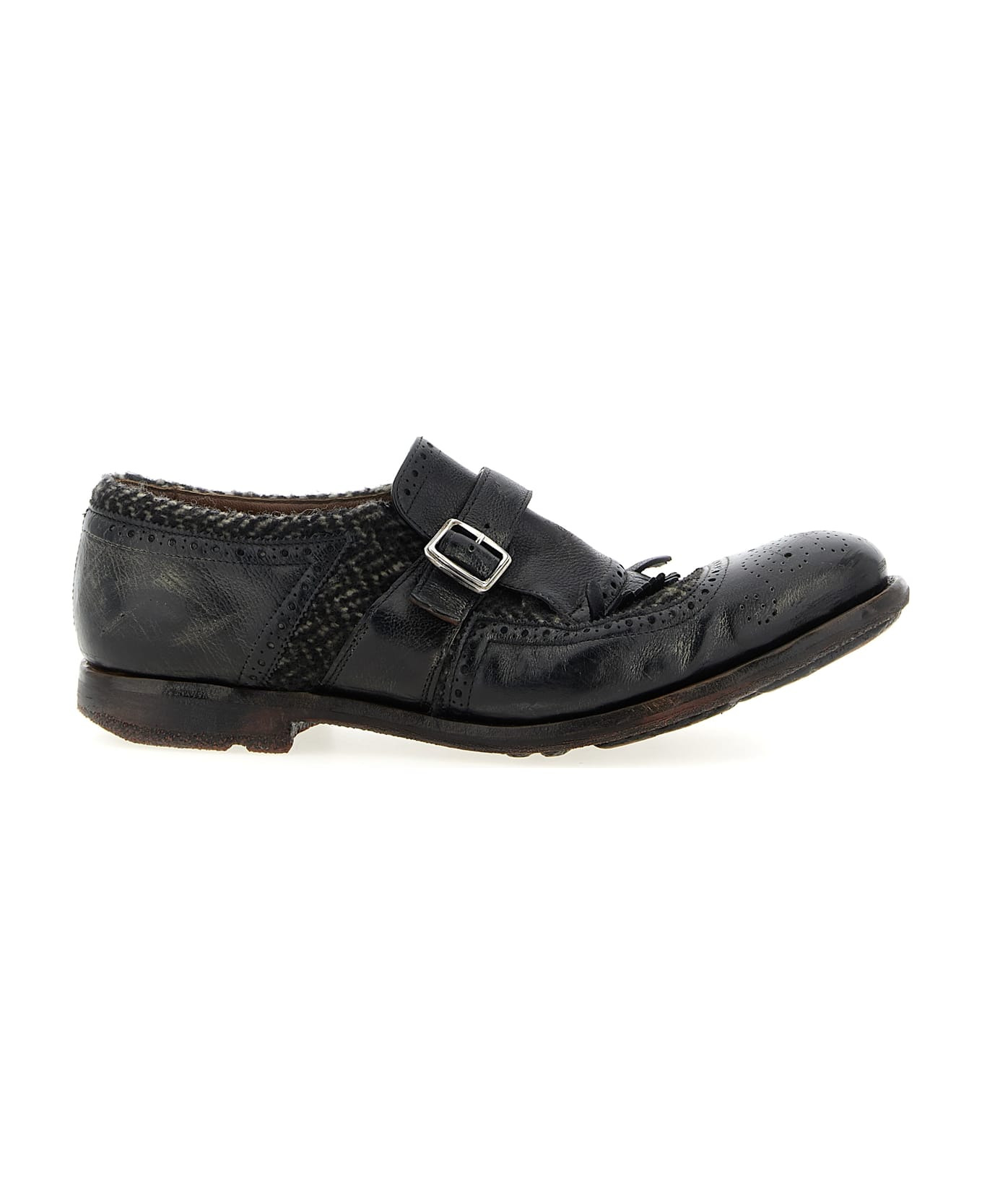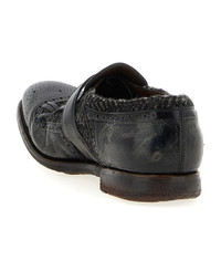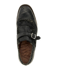 'Shanghai' vintage-effect leather loafers with houndstooth wool inserts, front fringes and buckle, leather and rubber sole. Composition: 100% calfskin leather (Bos Taurus) Made in: Italy Color: Black Size and fit: - UK MEN Model number: EOG001FG000009ABRF0AAB