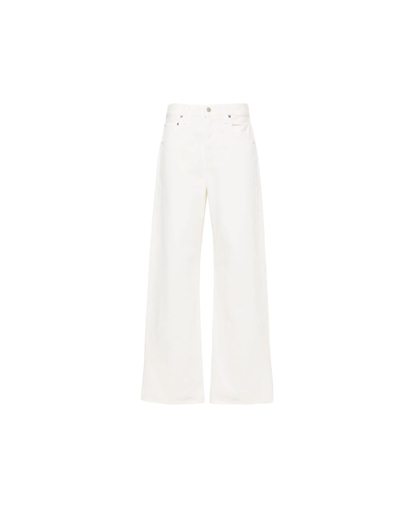 white cotton denim logo patch to the rear high-waisted belt loops front button fastening classic five pockets wide leg Made in: United States of America Color: WHITE Size and fit: - front rise: 27.0 centimetres, inside leg: 84.0 centimetres, hips: 94.0 centimetres, waist: 72.0 centimetres Model number: 2053B1248PMINA