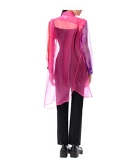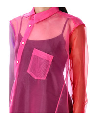 Asymmetric Color Block Organza Shirt By Comme Des Garcons. Featuring: Point Collar Buttoned Placket Long Sleeves With Buttond Cuffs Chest Patch Pocket Asymmetric Design Long Length Model Is 1,70 M And Wears Size S Composition: 100% polyester Made in: Japan Color: Pink Model number: GOB0110511