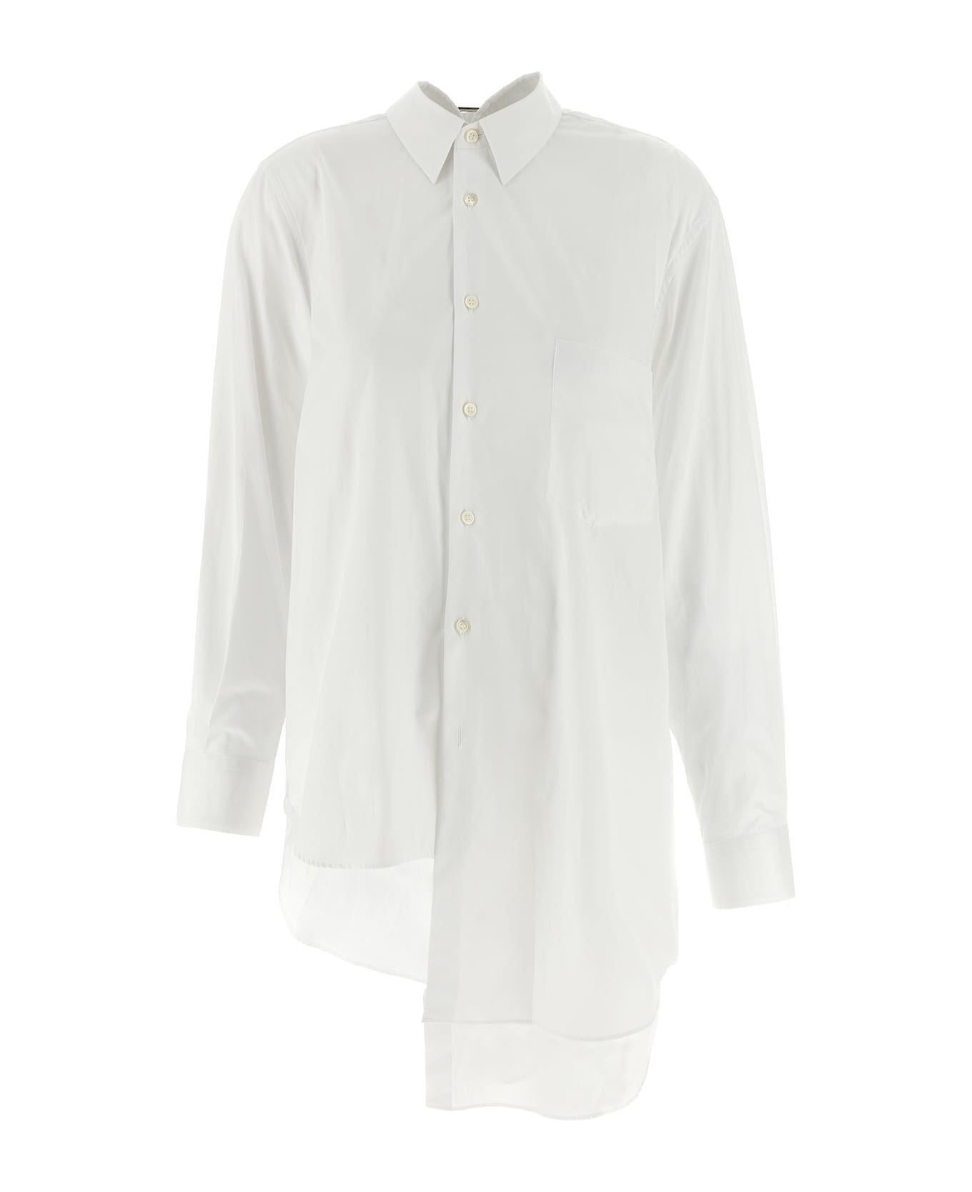 Cotton poplin shirt with front button closure, breast pocket, long sleeves with cuffs and dropped shoulders, asymmetrical hem with train. Composition: 100% cotton Made in: Japan Color: White Size and fit: - oversized fit Model number: GPB0132