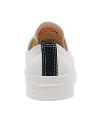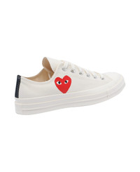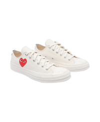 Play X Converse white Chuck Taylor sneakers, laces closure, round toe, fabric upper, lateral print heart detail, logo Composition: 100% Fabric/rubber Sole Made in: Vietnam Color: White Size and fit: - UK SIZE Model number: P1K1282