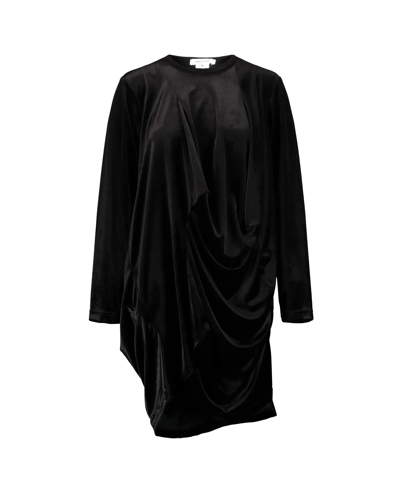 Comme des Garcons mini dress or long top in velvet with irregular draped details. GTIN code: GP T009 W25 Made in: Japan Color: Black Model number: GPT009