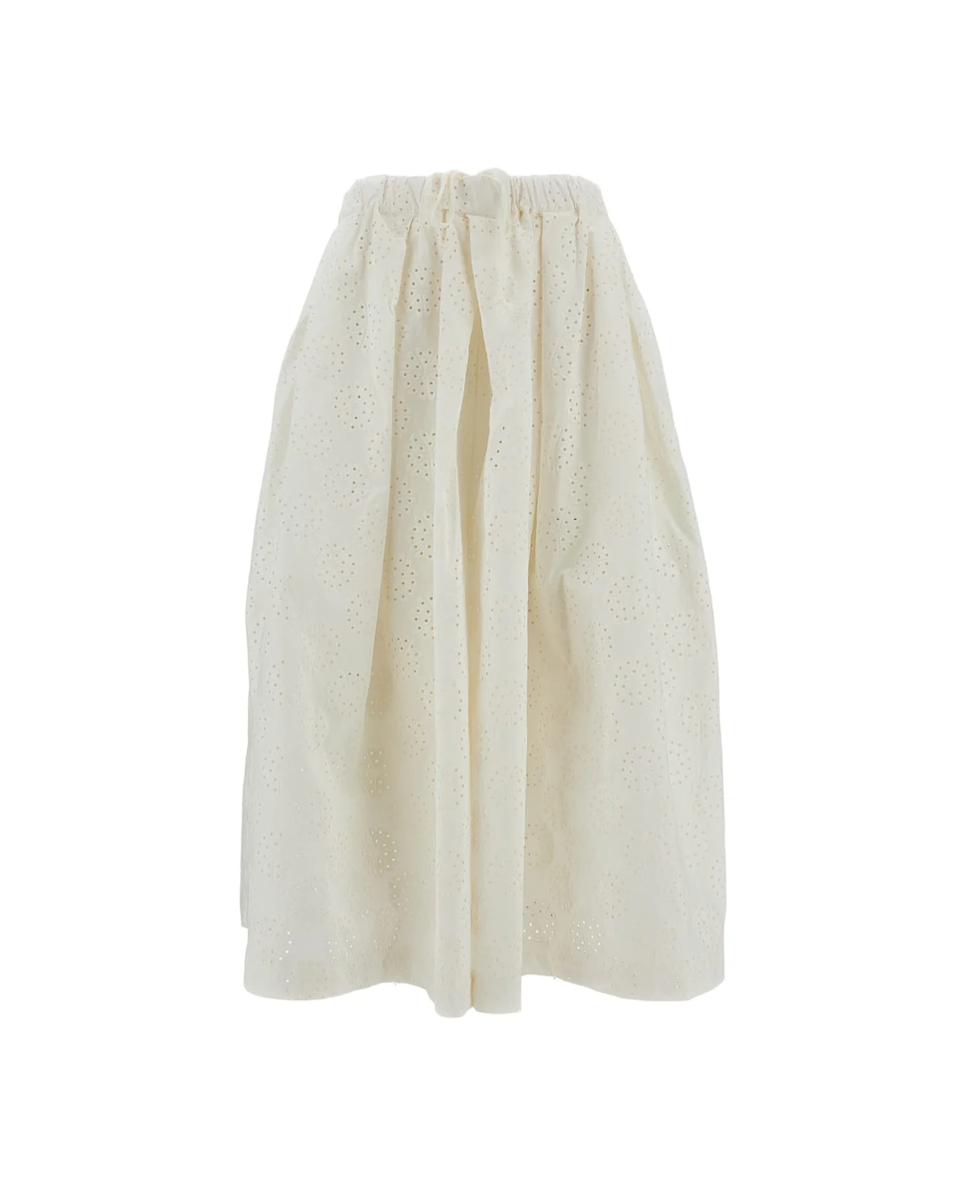Cotton fabric trouser skirt Eyelet floral pattern Elasticated waist with drawstring Wide leg Side welt pockets Ankle-length Color: white Composition: 100% Cotton Made in: Japan Color: White Model number: GQP0190511