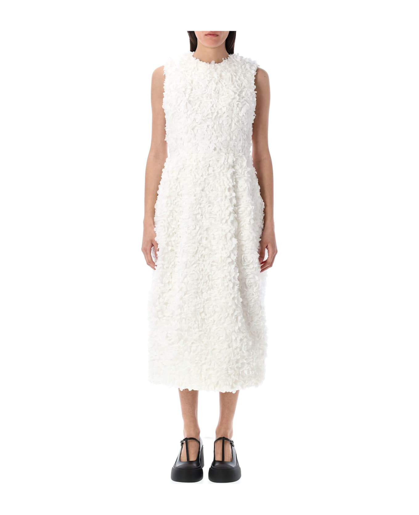 Floral-applique Midi Dress By Comme Des Garcons. Featuring: Round Neck Sleeveless Concealed Back Zip Fastening Floral-applique All-over Mid-length Model Is 1,70 M And Wears Size S Composition: 100% polyester Made in: Japan Color: WHITE Model number: GOO0030511