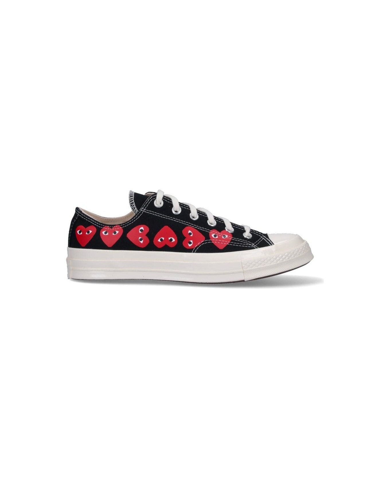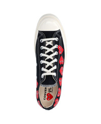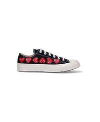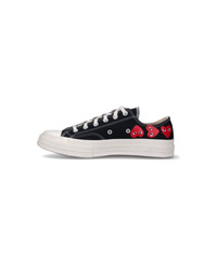 Comme Des Gar s Play Low Converse Multi Heart Chuck 70 sneakers in black cotton with round rubberized toe, laces, red heart print on the sides, rubberized label on the back logo, and rubber sole. composition: 100% textile Made in: Vietnam Color: Black Size and fit: - W Heel 1 in / 2,5 cm x H x D cm handle Platform 1 in / 2,5 cm Model number: P1K1261
