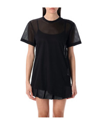 Mesh T-shirt By Comme Des Garcons. Featuring: Crew Neck Short Sleeves Asymmetric Hemline Logo Print At Back Loose Fit Model Is 1,70 M And Wears Size S Composition: 100% polyester Made in: Japan Color: BLACK Model number: GOT0150511