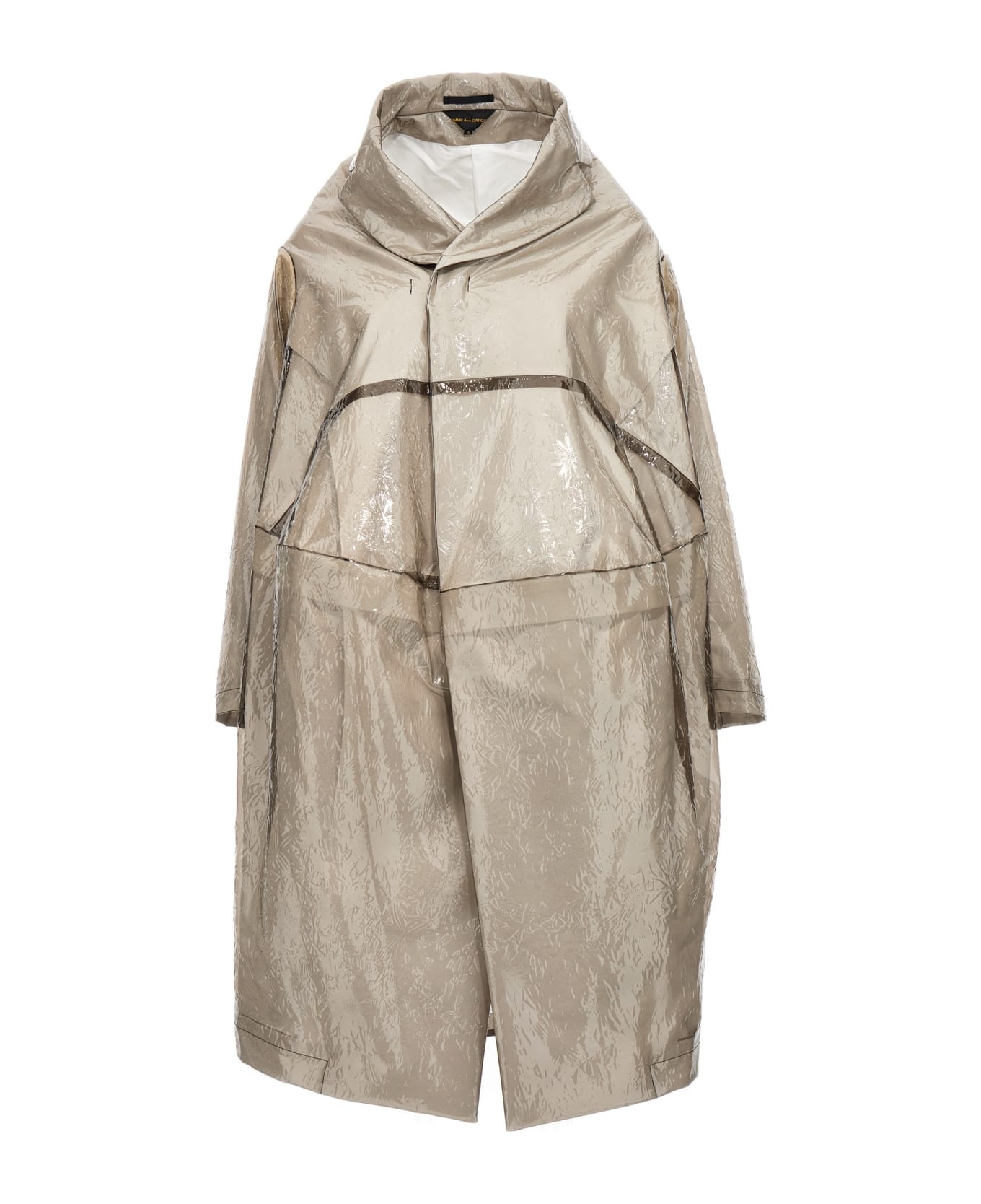 Oversize polyurethane trench coat with texture, front hook-and-eye closure, pockets and long sleeves. Composition: 100% Polyurethane Made in: Japan Color: Gray Size and fit: - oversize fit Model number: GKC0030511