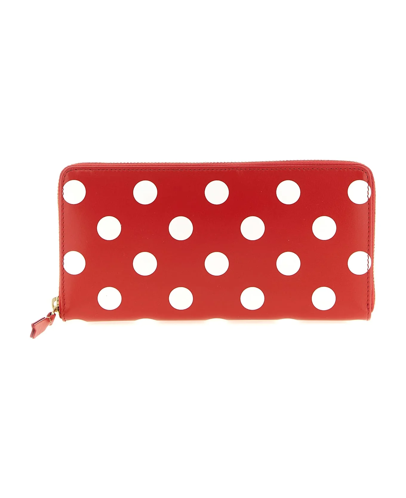 'Polka dots printed leather wallet with zip. Composition: 100% calfskin leather Made in: Spain Color: Red Size and fit: - W 10 x H 20 x D 2 cm Model number: SA0110PDRED