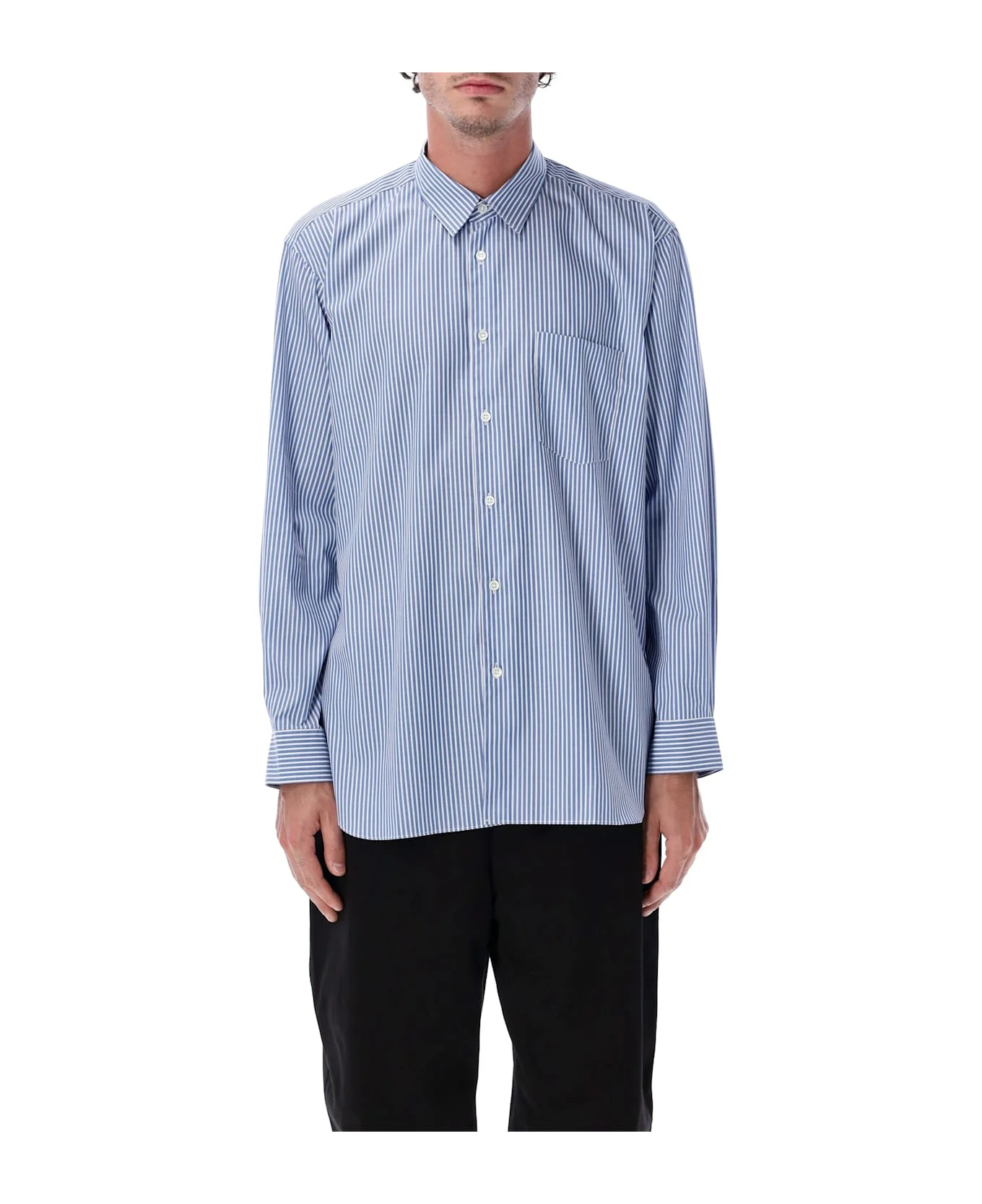 This Comme Des Garcons Shirt Design Is Tailored From Pure Cotton And Elevated With A Refined Striped Pattern. Featuring A Pointed Collar, Button Closure, Chest Pocket, And Long Sleeves With Buttoned Cuffs, It Balances Classic Shirting Codes With A Relaxed Silhouette. Lightweight And Breathable, It Is A Versatile Essential That Adapts Easily To Both Casual And More Formal Styling. Striped Pattern Pointed Collar Front Button Closure Chest Pocket Long Sleeves With Buttoned Cuffs Relaxed Fit Andrea Is 1,90 M And Wears Size L Composition: 100% cotton Made in: France Color: BLUE WHITE STRIPE Model number: FZB205PER1