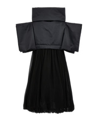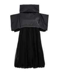 Two-material dress with padded and satin fabric top, square sleeves and high boat neck. The part of the skirt is made of flounced tulle. Composition: 100% polyester Made in: Japan Color: Black Size and fit: - true to size fit Model number: GLO010W231