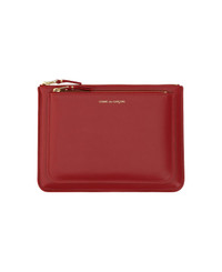 Calfskin wallet by comme des garcons, top zip fastening, flat patch pocket on the front with zip for closure, contrasting gold-plated sliders, iconic brand monogram printed in contrasting pressure on the front. Composition: 100% % Calf Leather Bos Taurus Made in: Spain Color: Red Size and fit: - Length 22 cm Width 16 cm Model number: SA5100OP3
