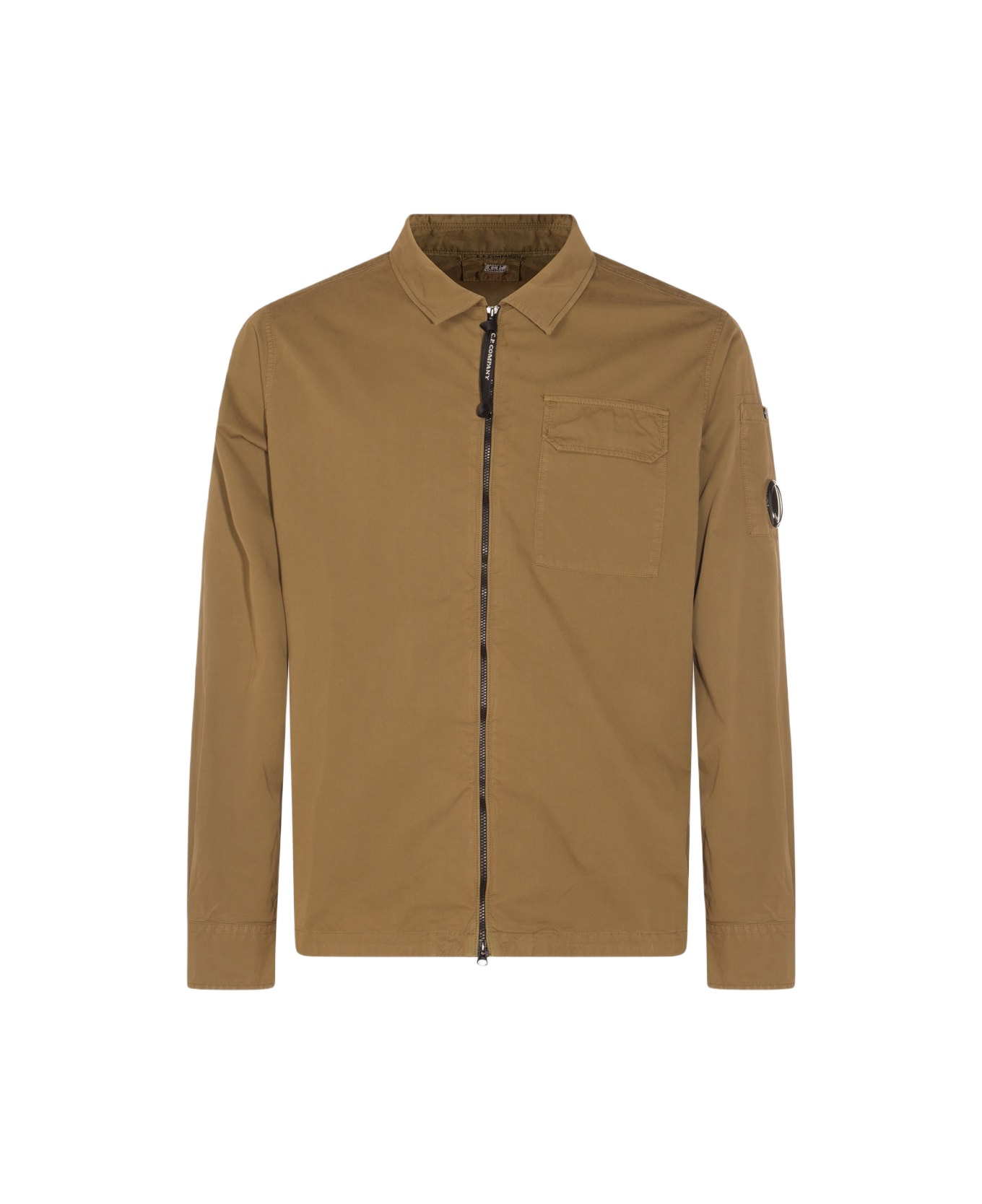 Beige cotton shirt from Cp Company featuring long sleeves, zip fastening, logo pacth and regular vestibility. Composition: _, 100% Cotton Made in: Tunisia Color: CAPERS Model number: 19CMOS705A110143G652