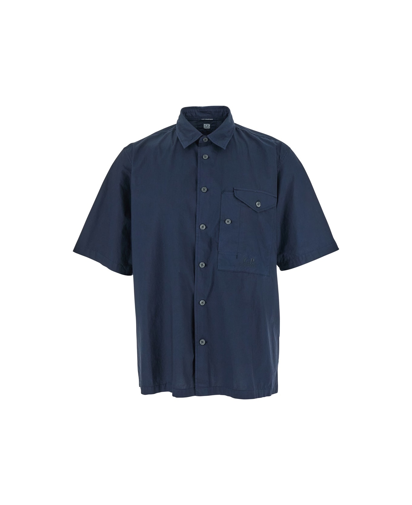 Shirt Blue Classic collar Short sleeves Front button closure One front patch pocket Logo lettering embroidery on the pocket Straight hem Cotton Regular fit Composition: 100% Cotton Made in: Tunisia Color: Blu Model number: 18CMSH249A005328G888