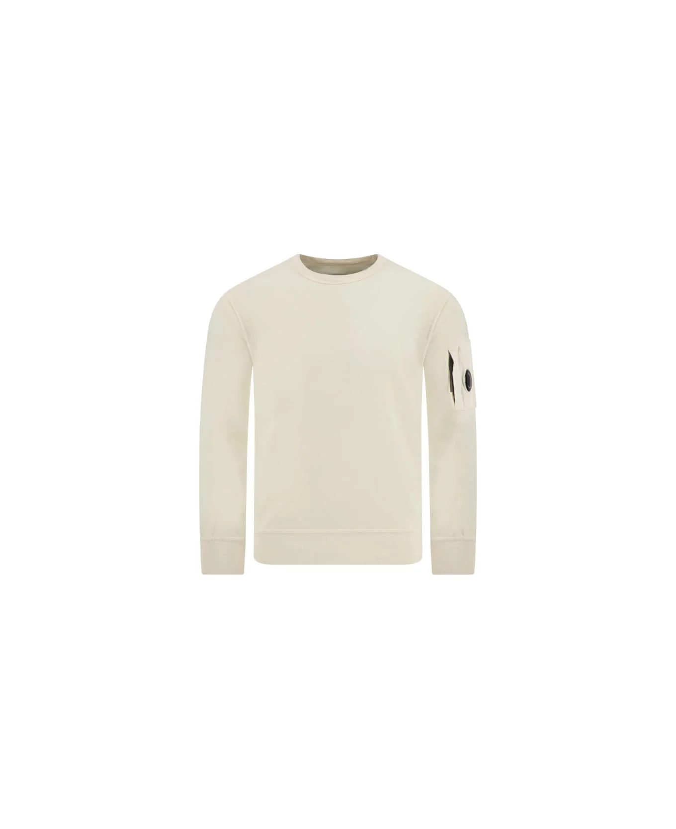 Pistachio shell crewneck sweatshirt made of Diagonal Raised Fleece, a medium-weight brushed cotton with a diagonal weave. The soft fabric ensures comfort and freedom of movement. The piece features an embroidered logo on the back of the neck, the iconic C. P. Company Lens, and ribbed cuffs and hem. Regular fit. Ribbed crewneck with embroidered logo on the back Pocket with Lens Ribbed cuffs and hem Regular fit Composition: 100% Cotton Made in Extra EU Color: Pistacchio Model number: 19CMSS713A005086W