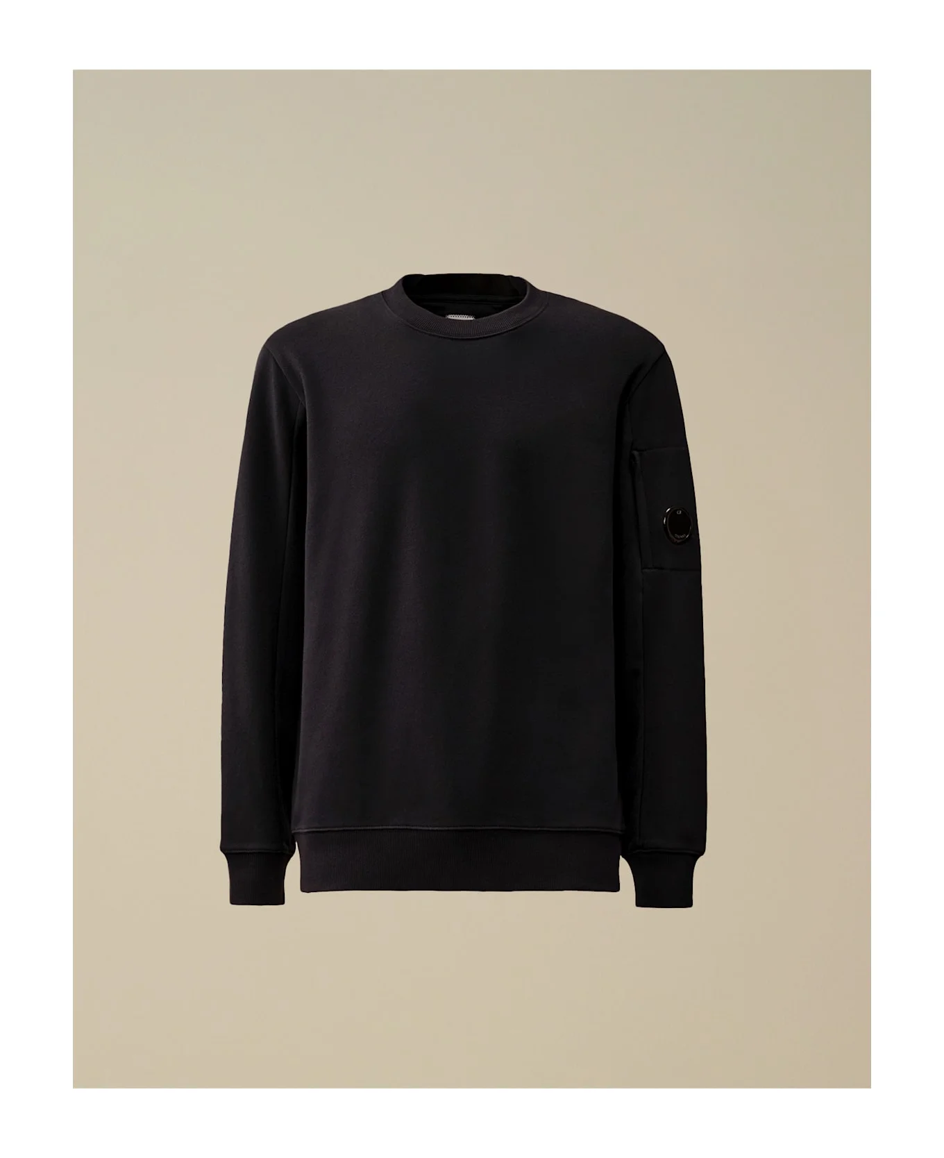 Crewneck sweatshirt made of Diagonal Raised Fleece, a medium-weight brushed cotton with a diagonal weave. The soft fabric ensures comfort and freedom of movement. The piece features an embroidered logo on the back of the neck, the iconic C. P. Company Lens, and ribbed cuffs and hem. Regular fit. Ribbed crewneck with embroidered logo on the back Pocket with Lens Ribbed cuffs and hem Regular fit Composition: 100% Cotton Made in Extra EU Color: Black Model number: RCCMSS713A005086W