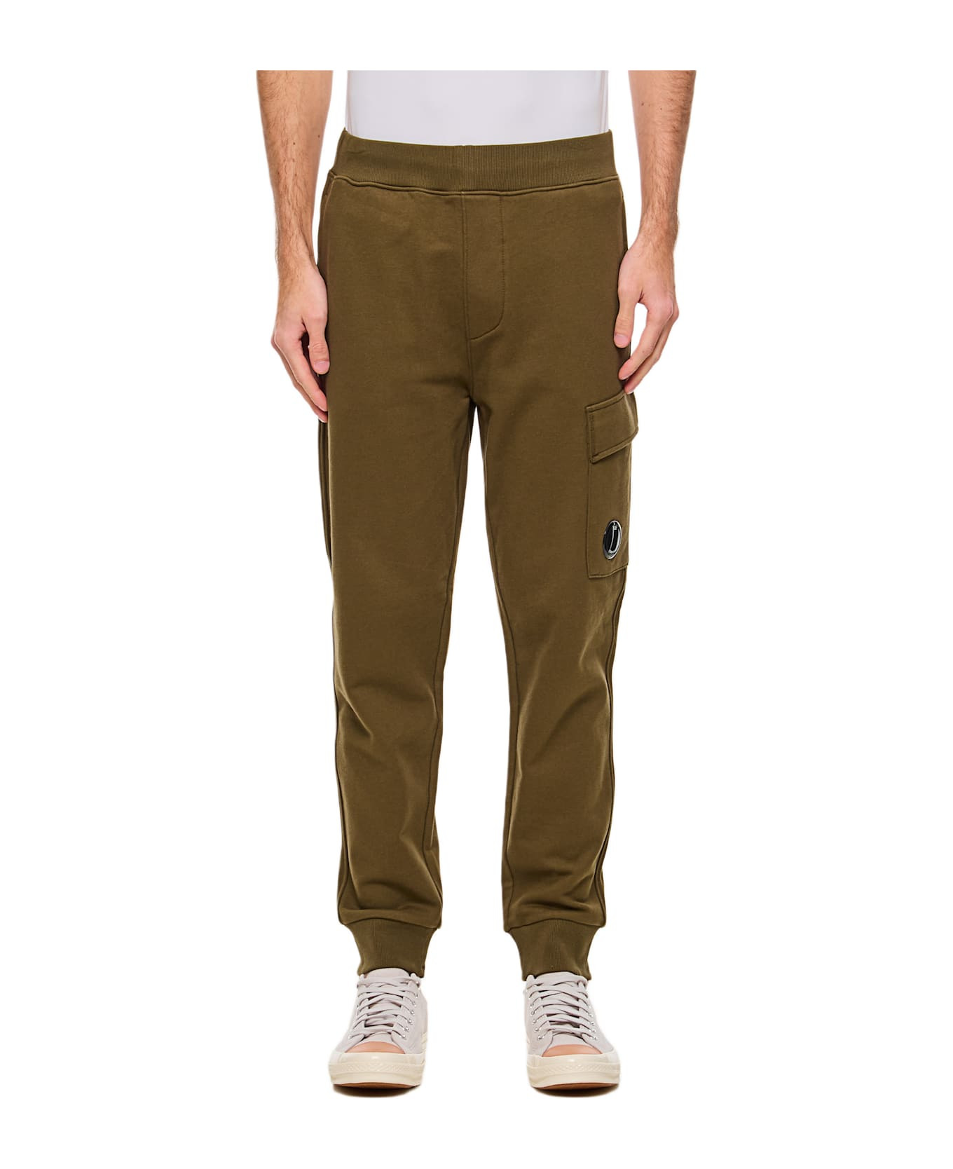 Pants with elastic at waist and ankles Pockets Side logo Green color Composition: 100% Cotton Made in: Myanmar Color: Green Size and fit: - Regular size Model number: 18CMSP017A005086W683
