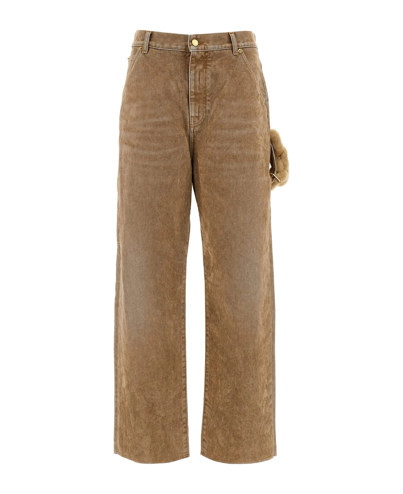 'Lisa' carpenter jeans in flocked cotton denim with straight leg, removable faux fur chain detail, front zip and button closure, five pockets, back logo tag. Composition: 100% cotton Made in: Italy Color: Beige Size and fit: - true to size fit Model number: WTR58DFL030085