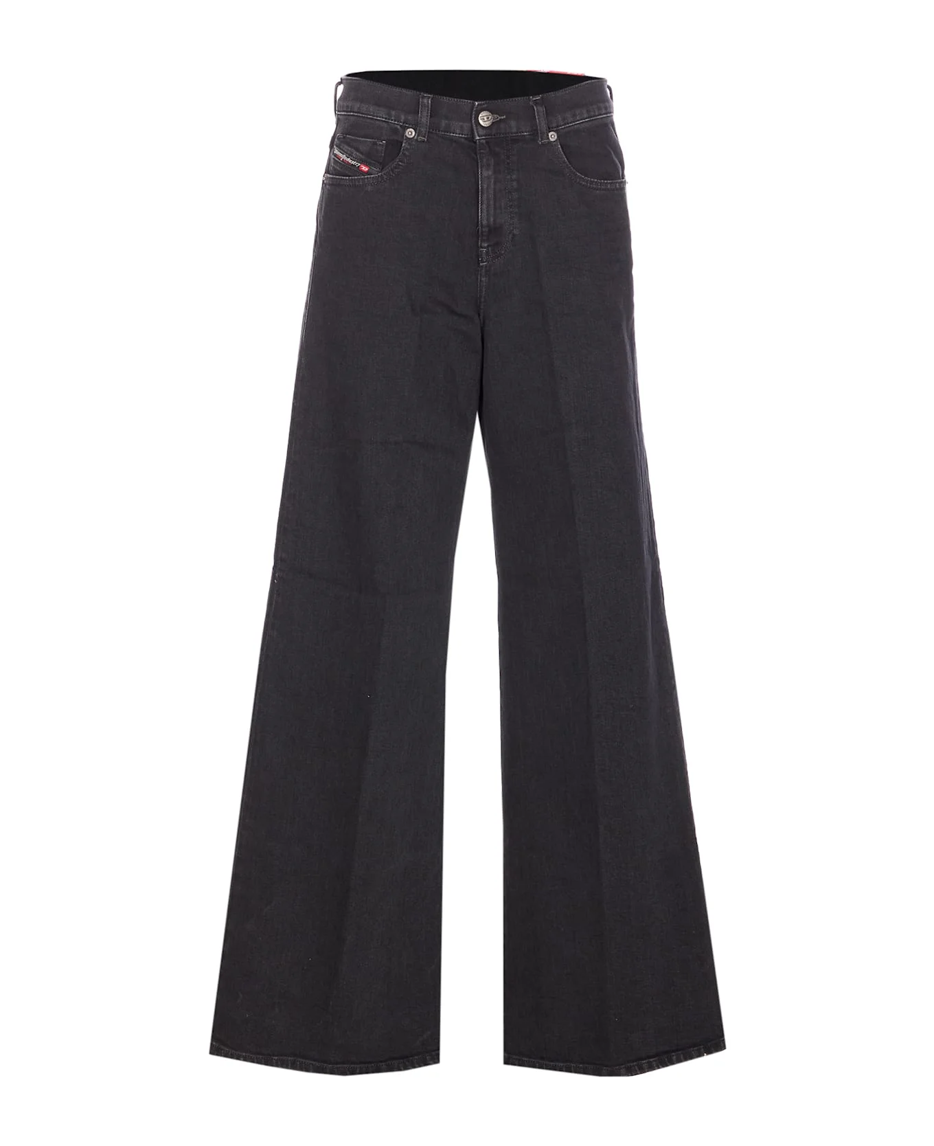 Diesel black 1978 D-Akemi jeans, flare fit, mid waist, wide leg, button and zip closure, pockets, patch logo on the back, wide leg Composition: 99% Cotton, 1% Elastane Made in: Tunisia Color: Black Size and fit: - DENIM SIZE Model number: A0362409N8902