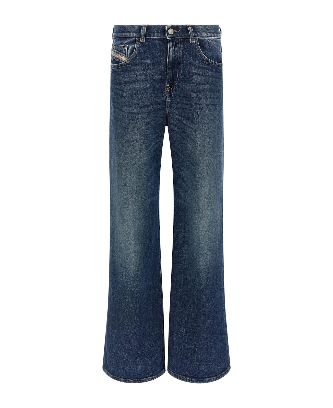 '1978 D-Akemi' stonewashed cotton denim jeans with contrast stitching, mid waist, wide flared leg, front zip and button closure, five pockets, back logo tag. Composition: 99% cotton, 1% elastane Made in: Tunisia Color: Blue Size and fit: - true to size fit Model number: A0362509L2101