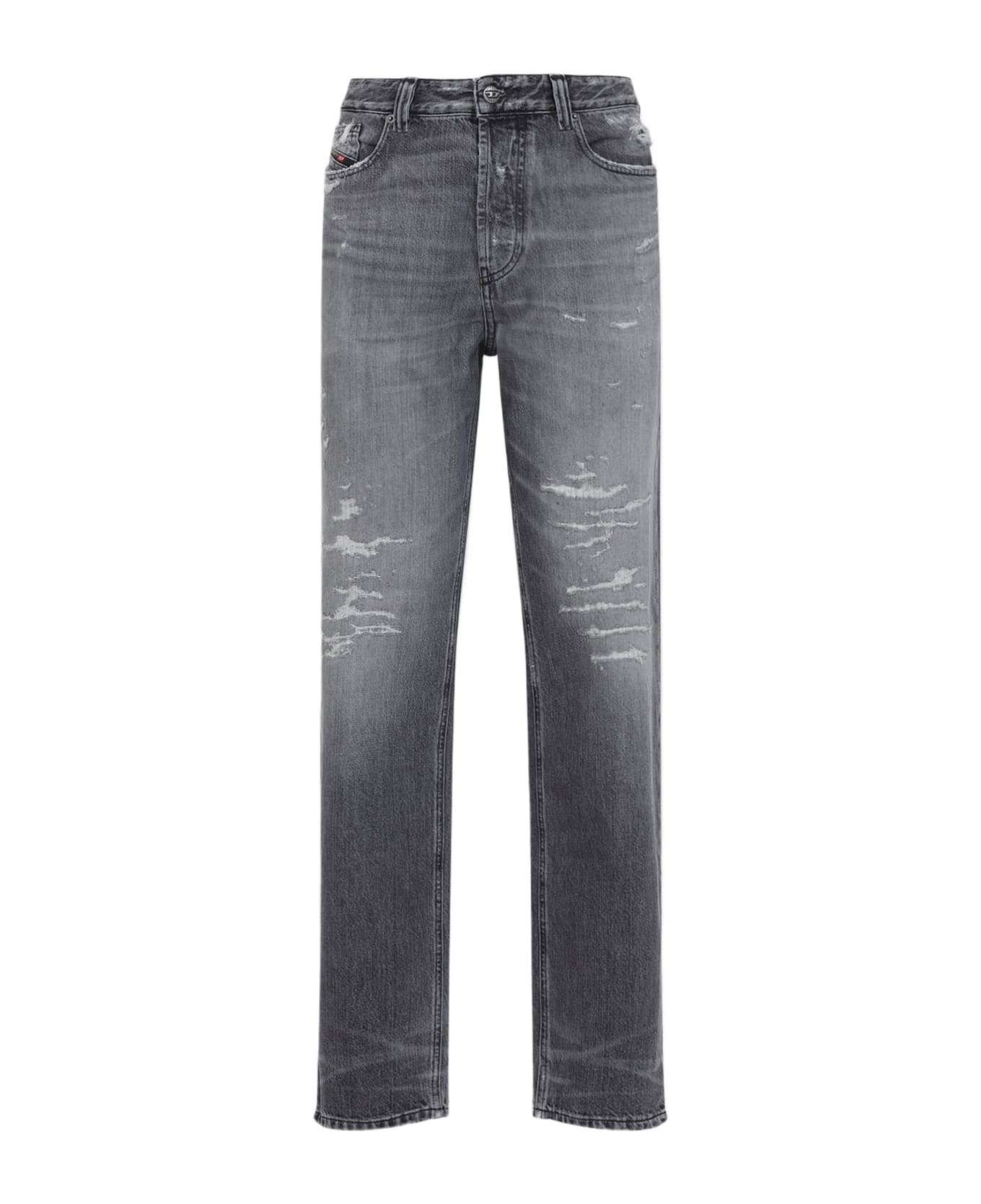 Diesel 1988 D-Ark Grey Cotton Jeans. Crafted from washed grey cotton denim, distressed details, low rise, belt loops, 5-pocket design, front concealed button fastening, branded leather label at the back waist, straight leg. Made in: Italy Color: Grey Model number: A0701809M6402