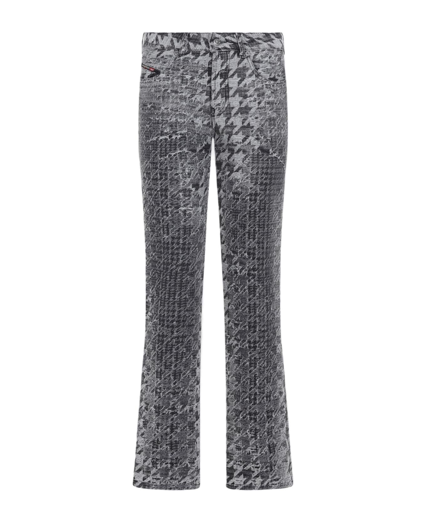Diesel Grey Cotton 1992 D-Jiann Jeans. Pure grey cotton jeans, front concealing zipped fastening, front buttoned fastening, belt loops, side patch logo, five pocket design, flared leg, straight hem. Herringbone white and grey design. Made in: Albania Color: Grey Model number: A213760CEBN02
