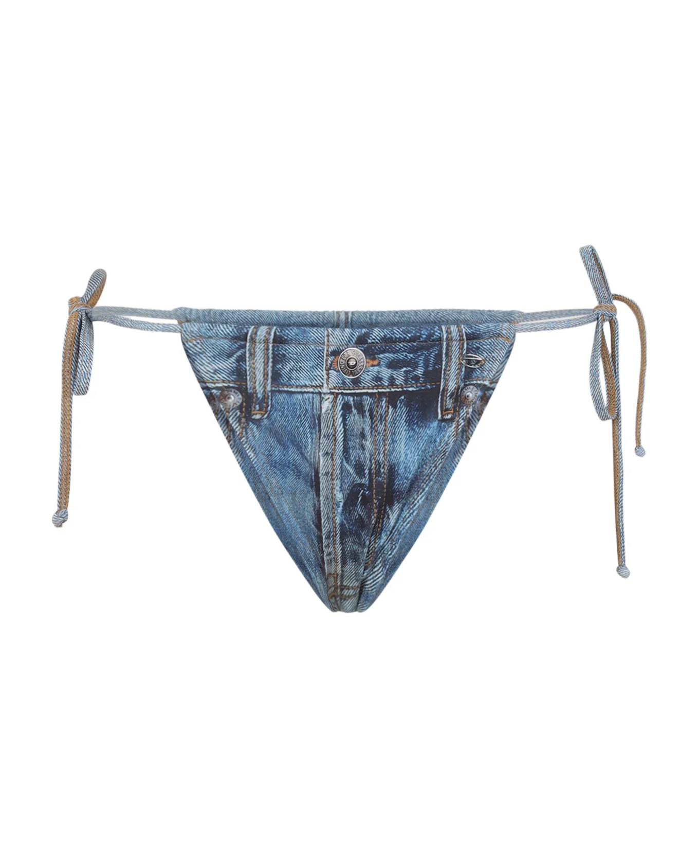 Diesel Jodie Polyester Bikini Bottom. High-cut brief crafted from blue tech fabric with an all-over denim print, featuring two self-ties on the sides, and a full lining. Made in: Tunisia Color: Denim Model number: A191580BNCWE6866