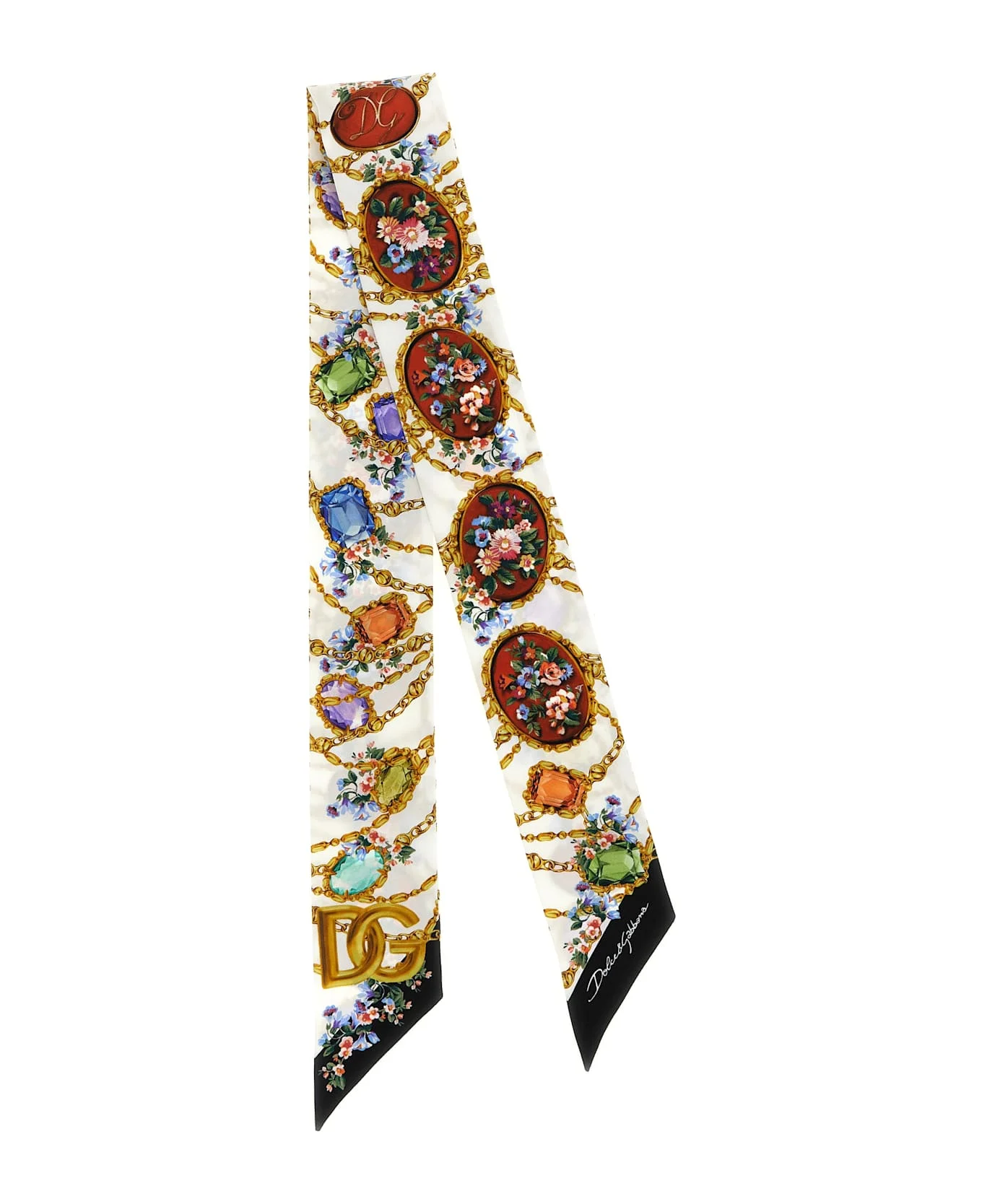 'Fiorellini' print silk twill bandeau. The differences in print placement you might find on this product is a characteristic of Dolce&Gabbana's Handmade products. A peculiarity that makes each garment or accessory unique and exclusive. Composition: 100% silk Made in: Italy Color: Multicolor Size and fit: - 6 x 100 cm Model number: FS215AGDDLIHA5ZD
