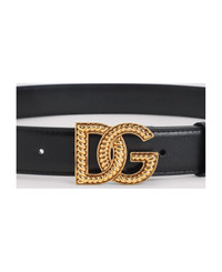 Dolce & Gabbana Black Calf Leather Belt. Pure black calf leather belt, adjustable design, front signature gold-tone DG buckle, belt loop, tonal stitching. Made in: Italy Color: Nero Model number: BE1663AV95680999