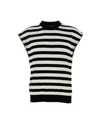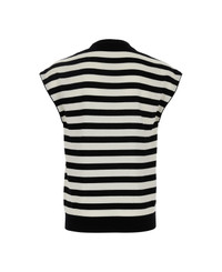 Black And White Sleeveless Top With Round Neck And All-over Strpied Motif In Cotton Woman