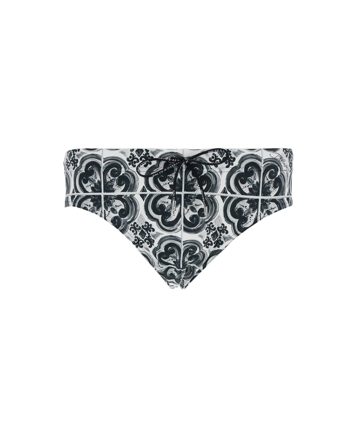 Black And White Swimsuit With All-over Majolica Print In Techl Fabric Man