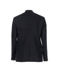 Black Double-breasted Jacket With Peak Revers In Linen Man