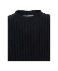 Black Ribbed Knit Crewneck Sweater With Logo Patch On The Rear In Wool Man