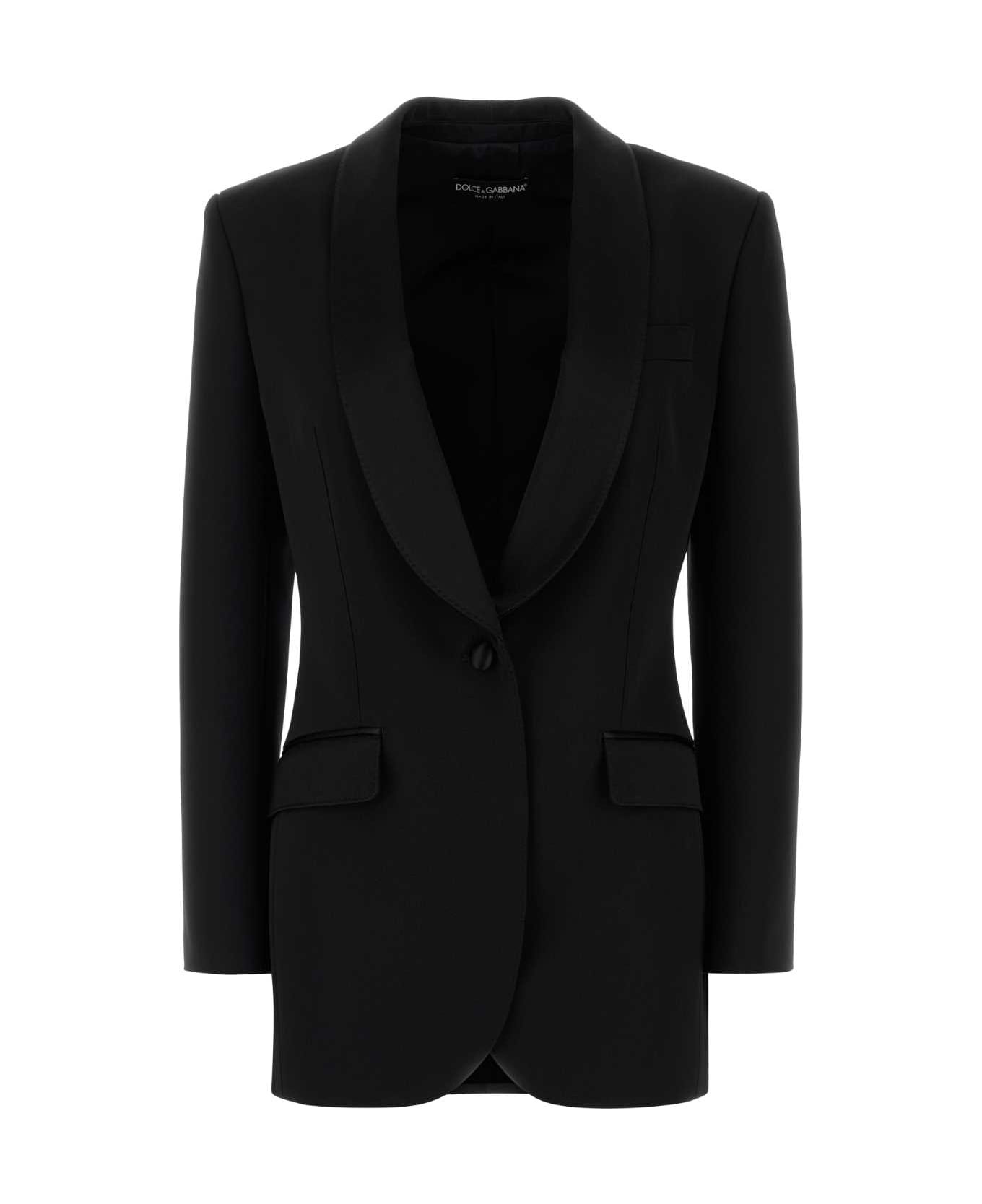 Black Stretch Wool Blend Blazer