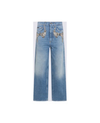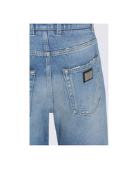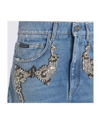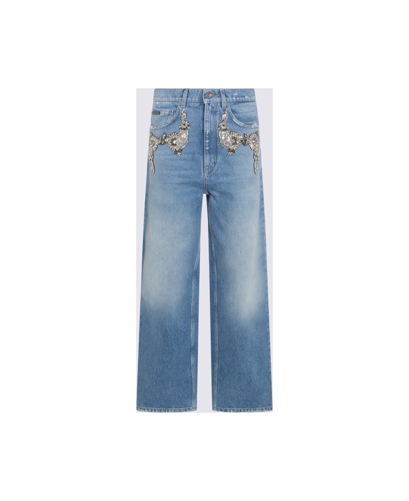 Blue cotton jeans from Dolce & Gabbana featuring high waist, belt loops, zip and button fastening, pockets, rhinestones and wide leg. Composition: _, 100% Cotton Made in: Italy Color: Blue Model number: FTDDHZG8OD1S9001