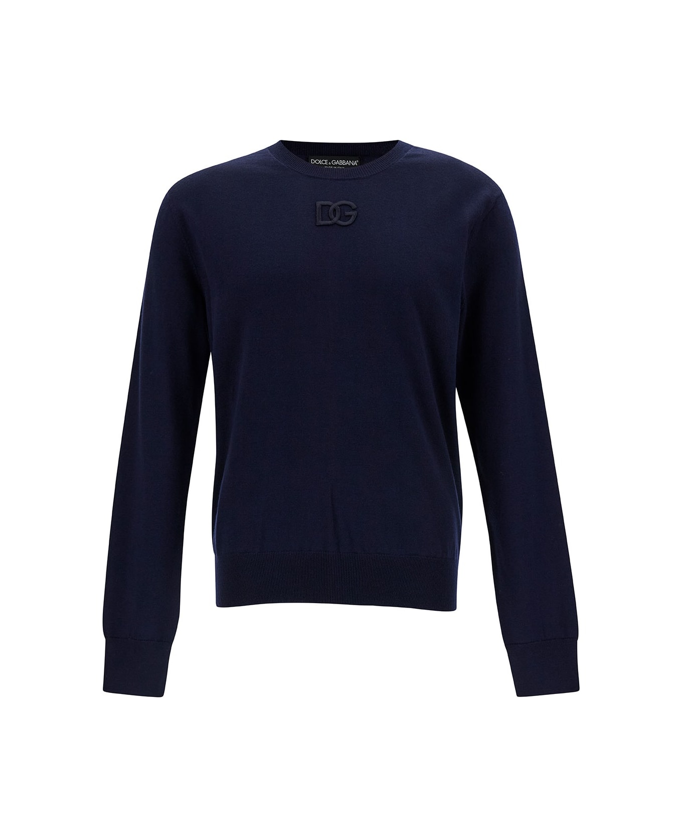 Blue Crewneck Sweater With Tonal Logo Embroidery In Wool Man