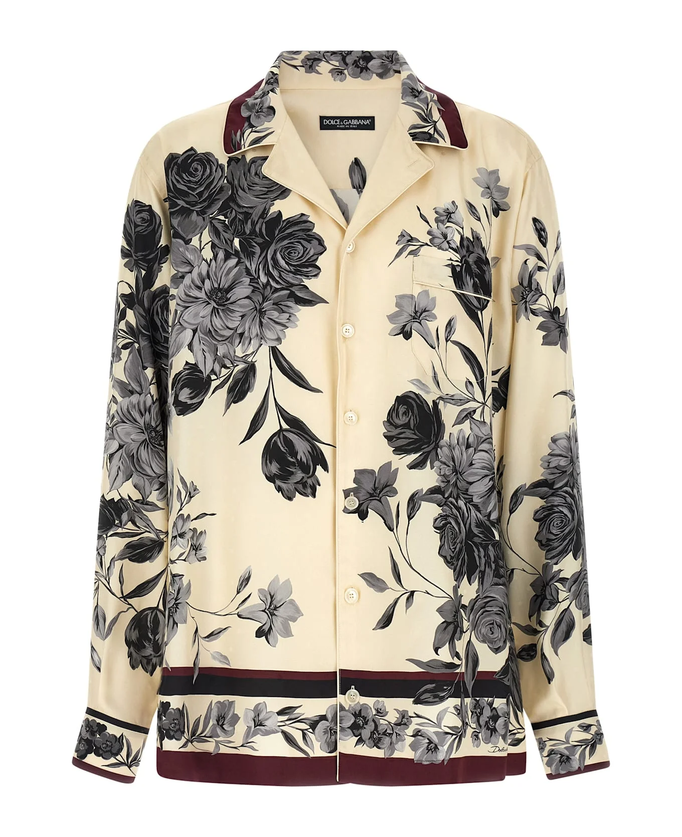 'Bouquet Fiori' print silk twill shirt, solid piping, vanity collar, breast pocket, front button closure, long cuffed sleeves, side slits, and asymmetric hem. The differences in print placement you might find on this product is a characteristic of Dolce&Gabbana's Handmade products. A peculiarity that makes each garment or accessory unique and exclusive Composition: 100% silk Made in: Italy Color: Multicolor Size and fit: - oversize fit - COLLAR size Model number: G5IF1THI10OHK5ST