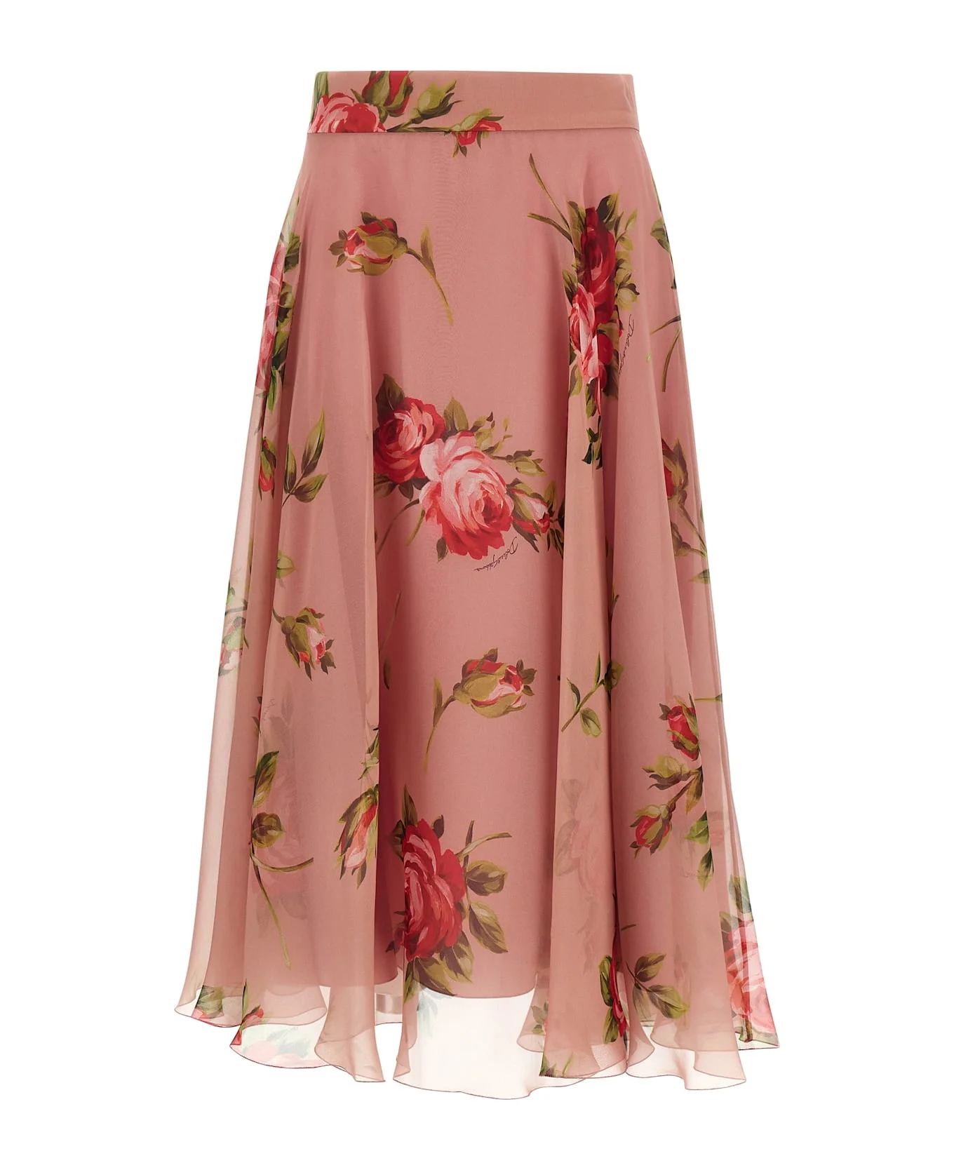 'Bouquet Rose' print chiffon midi skirt, crepe de chine full skirt, back zip closure. The differences in print placement you might find on this product is a characteristic of Dolce&Gabbana's Handmade products. A peculiarity that makes each garment or accessory unique and exclusive. Composition: 100% silk Made in: Italy Color: Pink Size and fit: - true to size fit Model number: F4CSOTIS11FHF5ZN