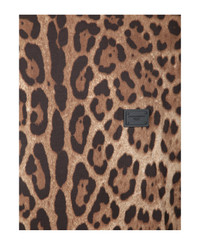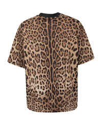 Brown T-shirt With All-over Leopard Motif In Cotton Man