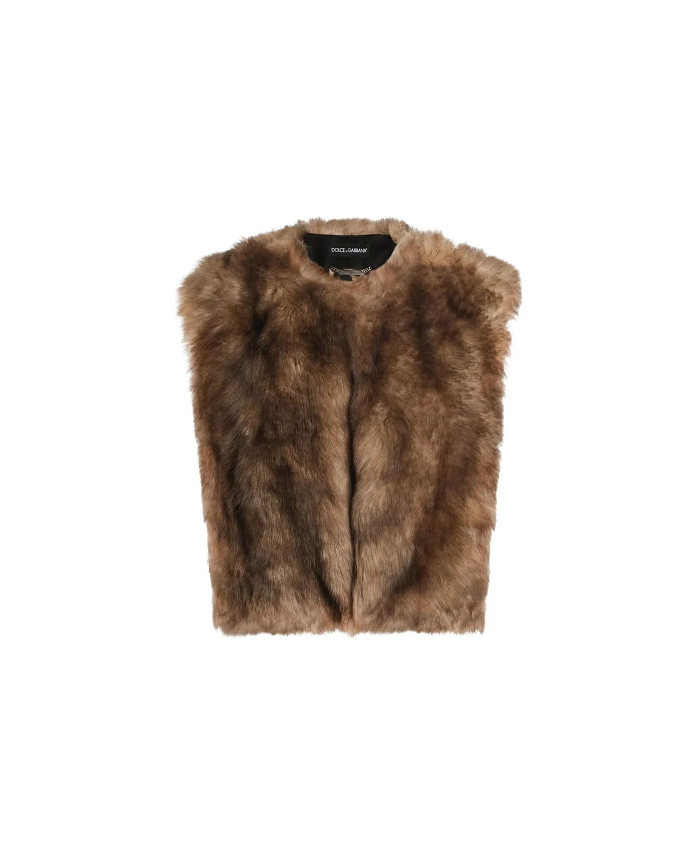 brown fur trim sleeveless round neck Made in: Italy Color: BROWN Model number: F0W6LFFUP98