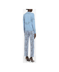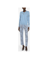 lilac purple silk blend lace detailing floral embroidery concealed fly and button fastening frayed hem Composition: Outer: Viscose, 41% , Cotton, 35% , Polyamide, 24% Lining: Silk, 91% , Spandex/elastane, 9% Made in: Italy Color: Clear Blue Model number: FTAM2THLM7LF3981