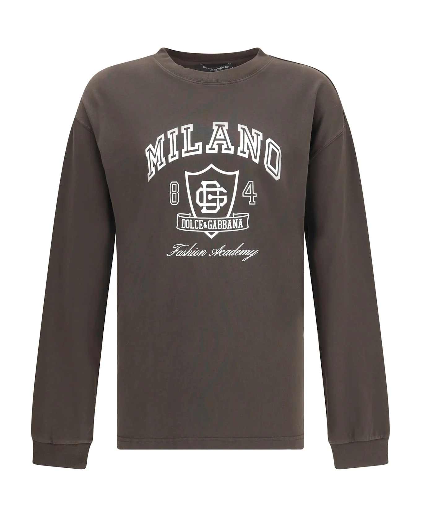 The cotton long-sleeve t-shirt by dolce & gabbana conveys an urban and distinctive aesthetic with its milano logo print on the front. a ribbed crew neck and clean lines enhance its comfortable fit, making it a versatile piece that blends practicality with contemporary style. Composition: 100% % Cotton Made in: Italy Model number: G8SY0TG7PLRM1348