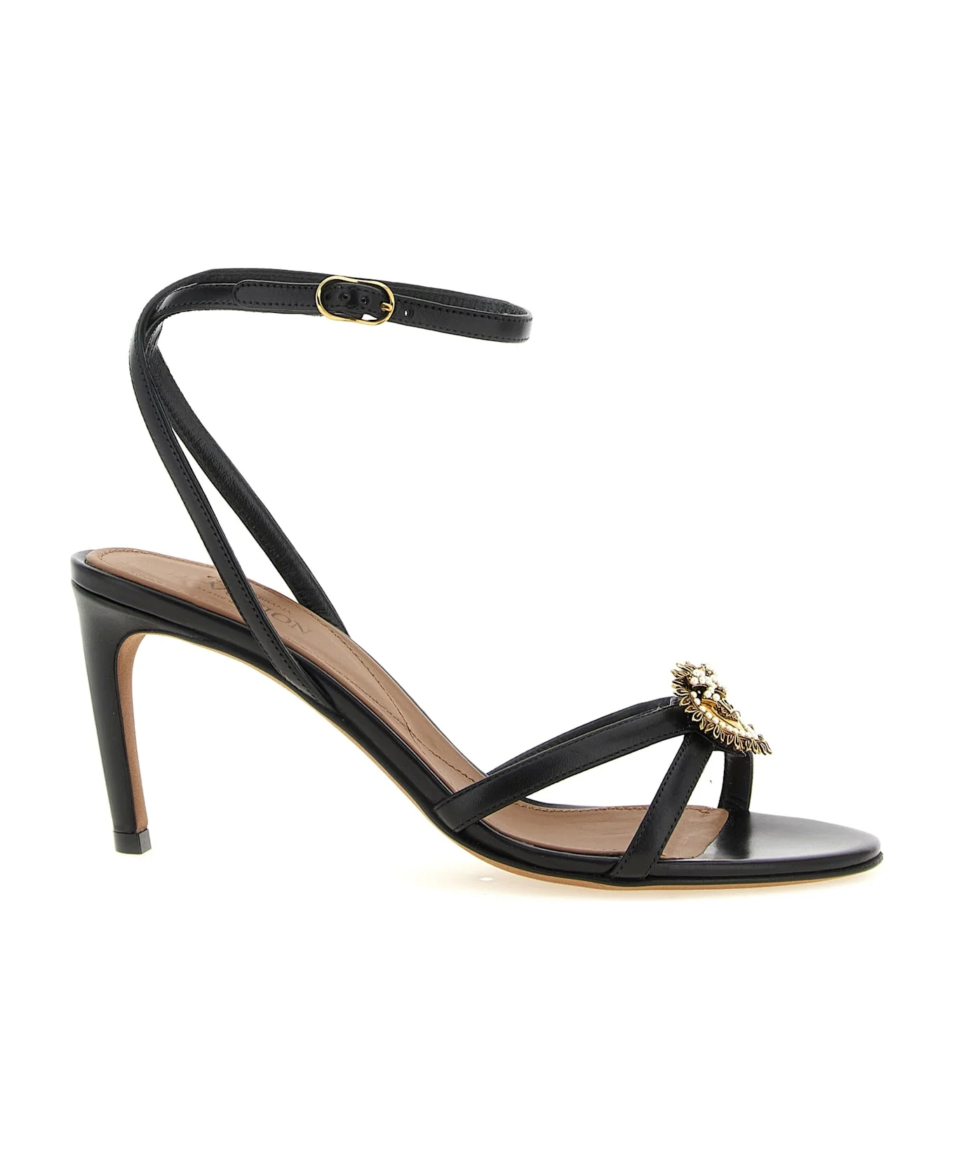 Calf leather sandals with 'Devotion' base, front weaved strips with antiqued galvanic metal and pearl 'Devotion' detail, double turn adjustable ankle strap, Texon insole, heel, leather sole. Composition: 100% calfskin leather (Bos Taurus) Made in: Italy Color: Black Size and fit: - EU WOMAN - Heels: 7.5 cm Model number: CR1983AP41280999